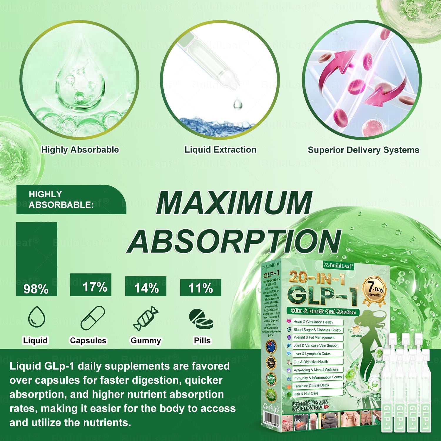Clinically tested by endocrinologist, 𝘽𝙪𝙞𝙡𝙙𝙇𝙚𝙖𝙛® 𝗚𝗟𝗣-𝟭 𝟐𝟎-𝗶𝗻-𝟭 𝗦𝗹𝗶𝗺 & 𝑯𝒆𝒂𝒍𝒕𝒉 𝑶𝒓𝒂𝒍 𝑺𝒐𝒍𝒖𝒕𝒊𝒐𝒏 activation can significantly improve obesity and other health issues within just 7 days.